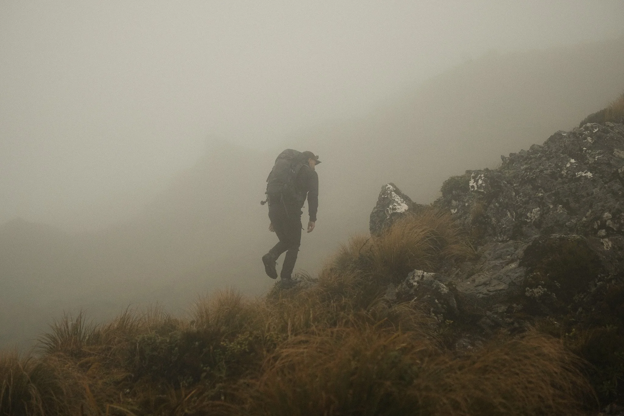 We awoke to a thick, persistent fog that clung to everything. A coffee and some breakfast got us going, and I’d say the visibility sat at a solid 50m as we headed up the first climb to the summit of Holdworth (1470m). The track then carried along the tops with some pretty decent ridge traverses and solid drops on either side. The fog rolled up from below, and even though it wasn't raining, we found ourselves pretty well soaked. After conquering the tops with only one brief wrong turn, the sharp descent back to the Valley below was next.