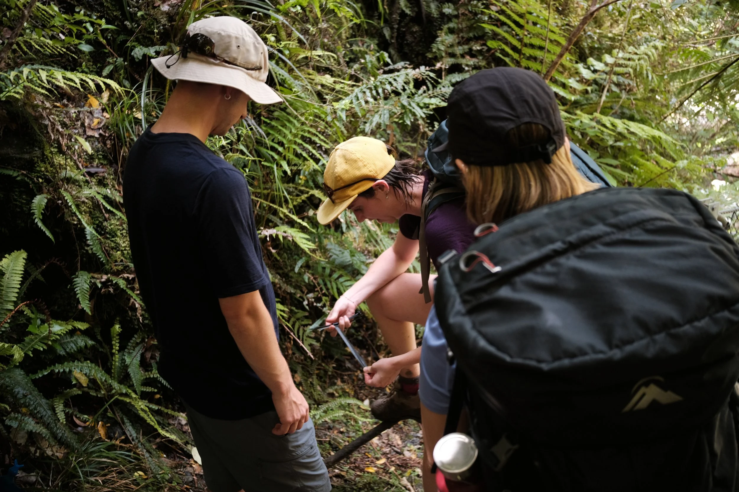 After everyone had had a dip and debriefed for the day, we sorted dinner, and the evening hustle and bustle in the kitchen began. This particular Saturday, there was a full hut and every bed was taken, so it all had a gentle hum about it. Some of us had opted for the dehydrated options, while others were on yet another Cam of Tuna for the day. The night commenced, and I headed off to bed early while the others spent an hour or so around the fire.